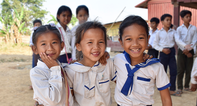 Three Cambodian girls enjoying a day at a UWS school we support, helping to break the cycle of poverty for their family.