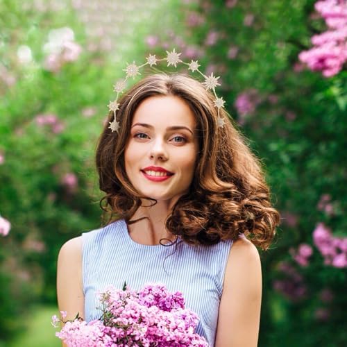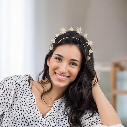 Hariendny Crystal Hair Band Halo Headbands Stars Headband Crystal Goddess Head Band Crown Headbands Rhinestone Halo Tiara Hairhoops Glitter Bridal Wedding Headpiece for Women Girls(Gold)