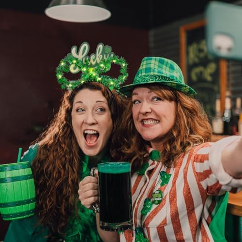 JONSTAR Light Up Headband St.Patrick’s Day Mouse Ears Headbands Lucky Shamrock Hairbands LED Glitter Foil Hair Accessory for Women and Girls