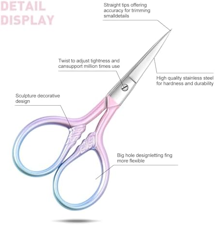 【Pointed Detail Scissors】:Extra sharp pointed tips straight edge blades. Be careful to avoid cutting the skin when using。
