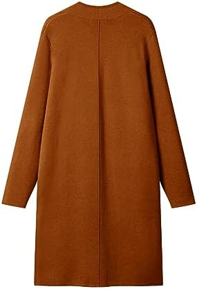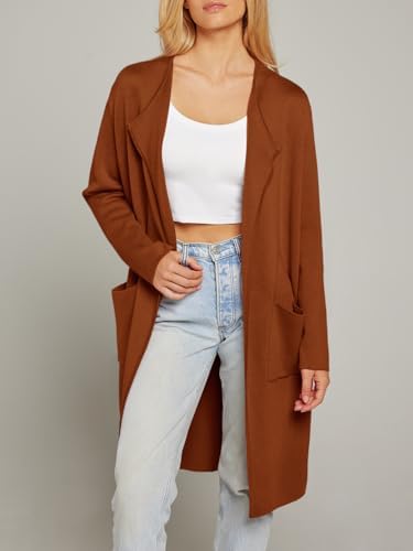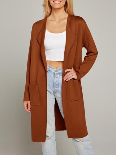 MEROKEETY Women’s Open Front Coatigan Sweater Long Sleeve Casual Knit Lapel Cardigan Coat with Pockets