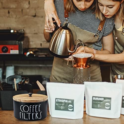 Rustic Farmhouse Style – The perfect way to hide unsightly coffee filters without taking up space anymore, complements any countertop decor, matches your coffee bar. Classic black color and white letter “filters” match for a rustic vintage style for your coffee filter. This coffee filter container are made by hand, which means each piece will be unique.