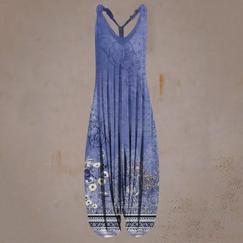 NAMTYQX 2024 Plus Size Floral Overalls for Womens Summer Fashion Baggy Pants Loose Fit Jumpsuit Boho Printed Women Jumpsuits